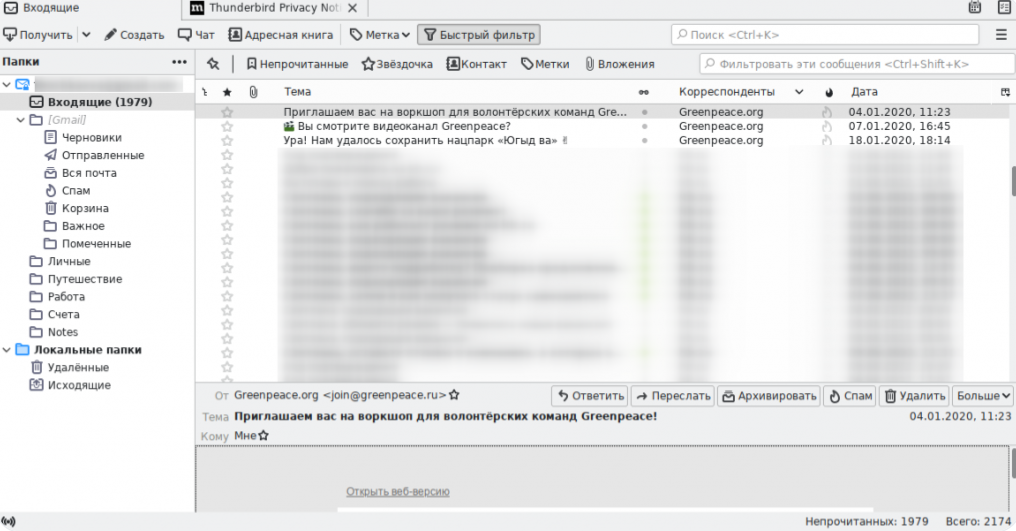 Рисунок 55 - Интерфейс почтового клиента Mozilla Thunderbird