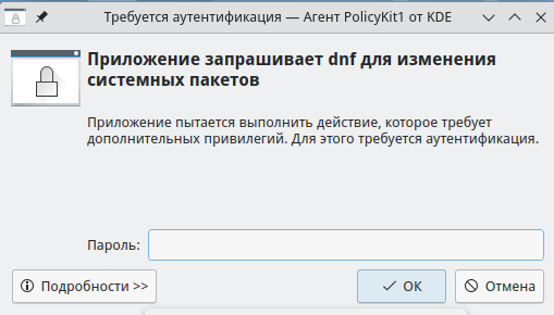 Рисунок 70 - Дополнительная аутентификация для установки пакетов