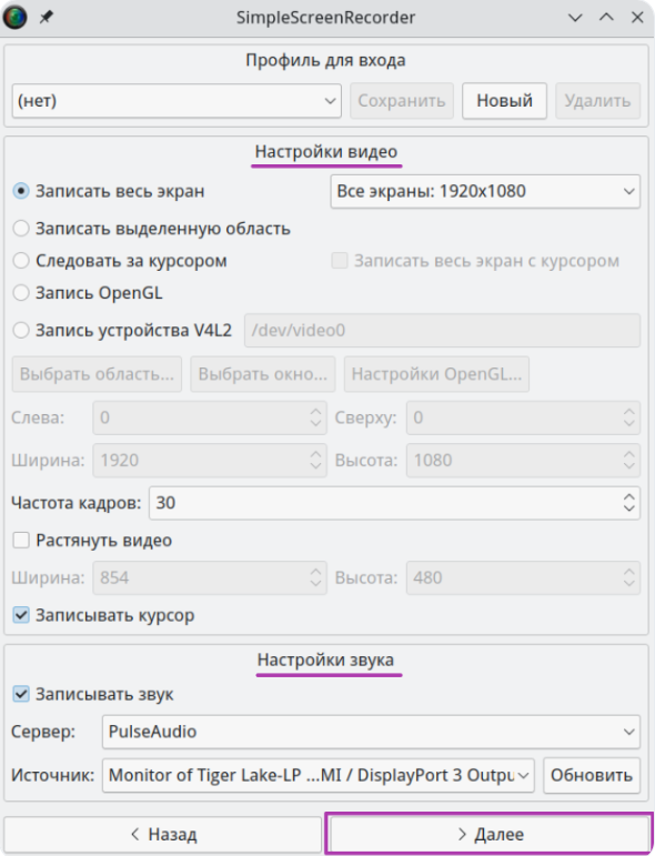 Рисунок 72 - Стартовое окно в SimpleScreenRecorder