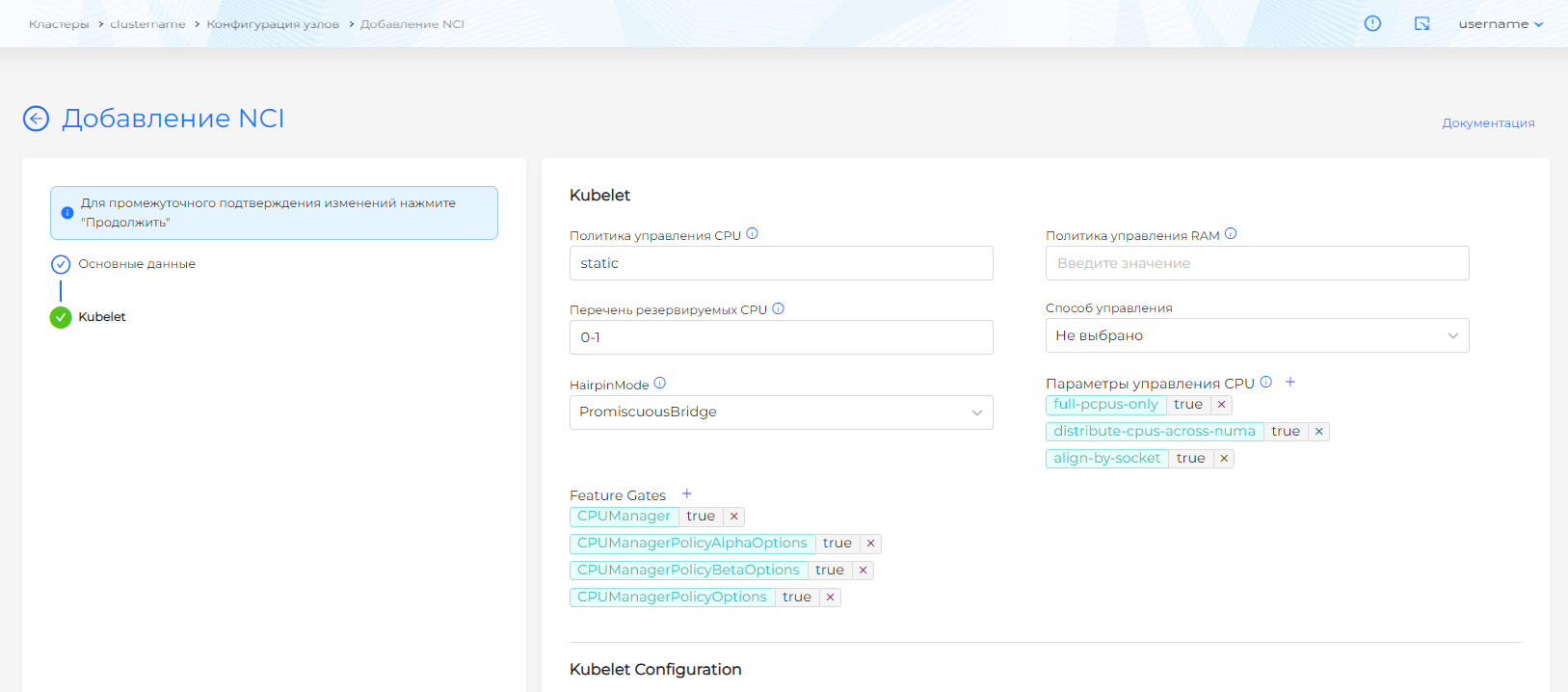 - в графическом интерфейсе кластера открыть страницу "Конфигурация узлов" раздела "Администрирование", нажать