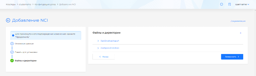 Добавитьи затемПродолжить, чтобы перейти к разделу "Файлы и директории"; - на шаге "Файлы и директории" нажать