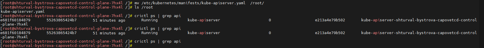 mv /root/kube-apiserver.yaml /etc/kubernetes/manifests/