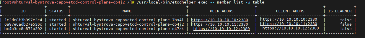 /usr/local/bin/etcdhelper exec -- member list -w table