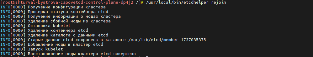 Важно ‒ Если контейнер "etcd" на узле в статусе Running, то команда etcdhelper rejoin не может быть выполнена.