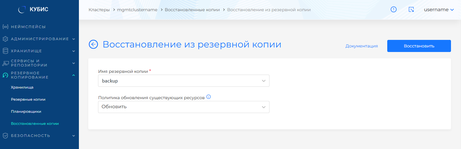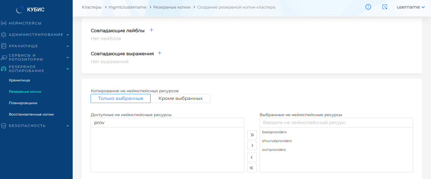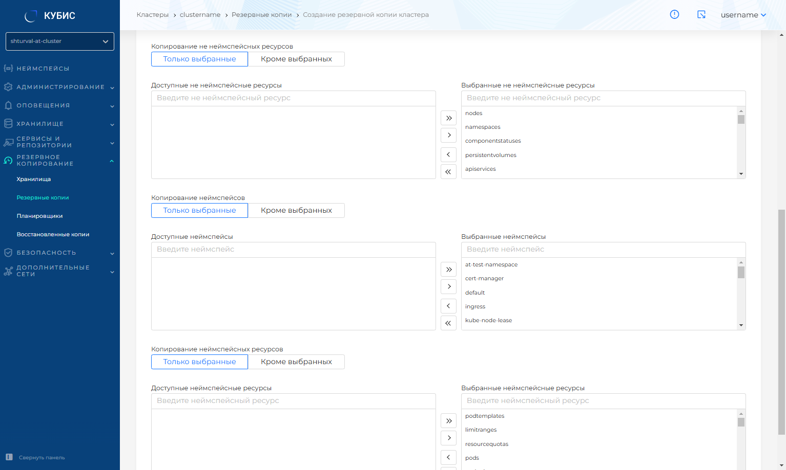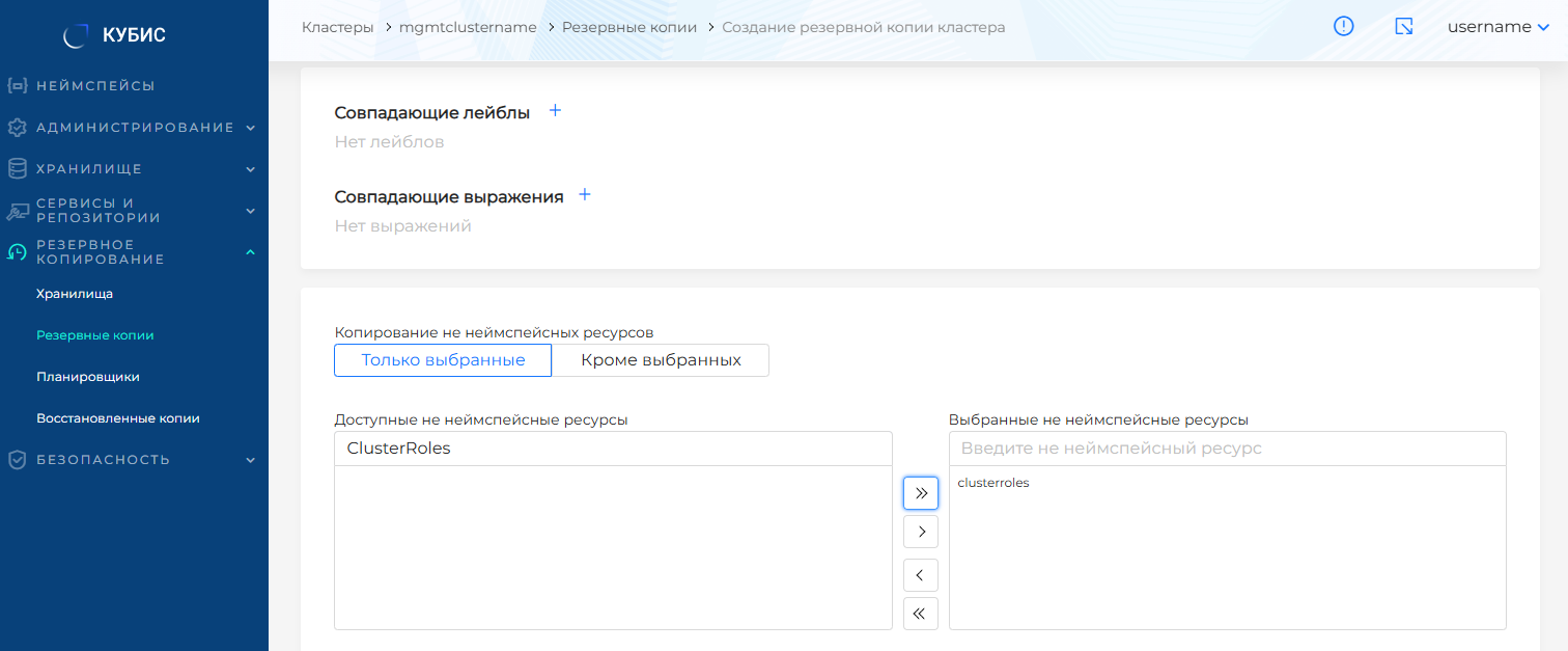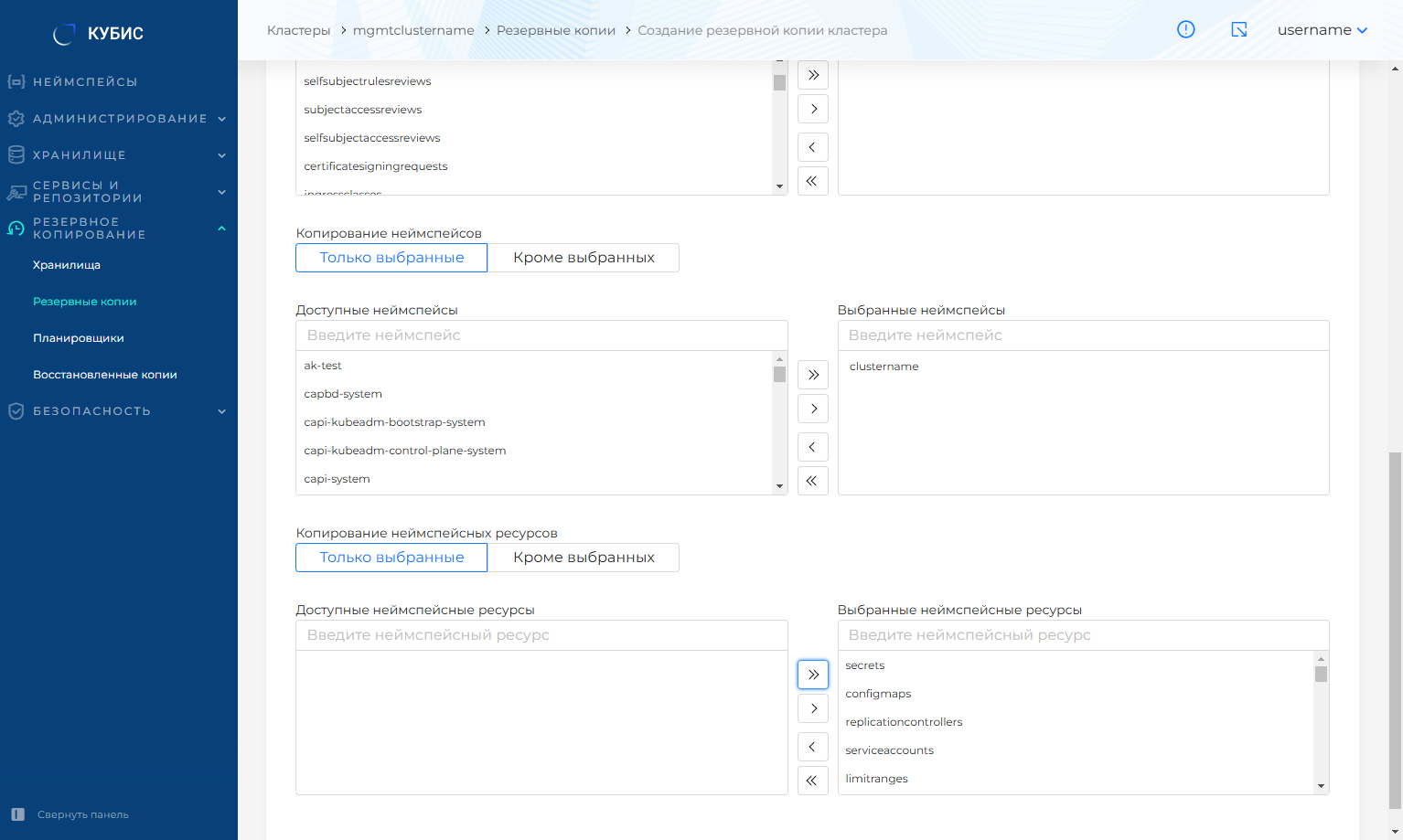- неймспейсов клиентских кластеров в кластере управления. Резервная копия должна включать все неймспейсные ресурсы неймспейсов клиентских кластеров (рисунок 43);