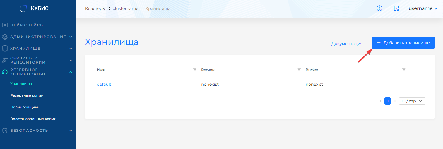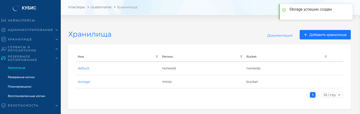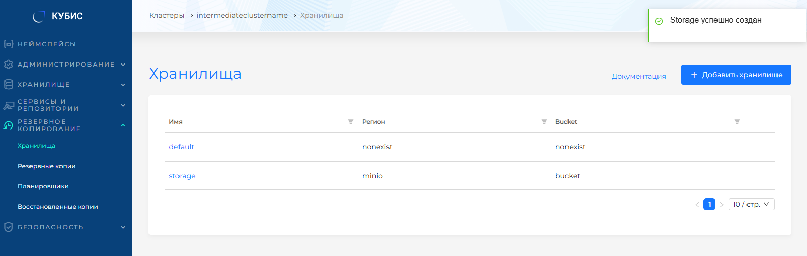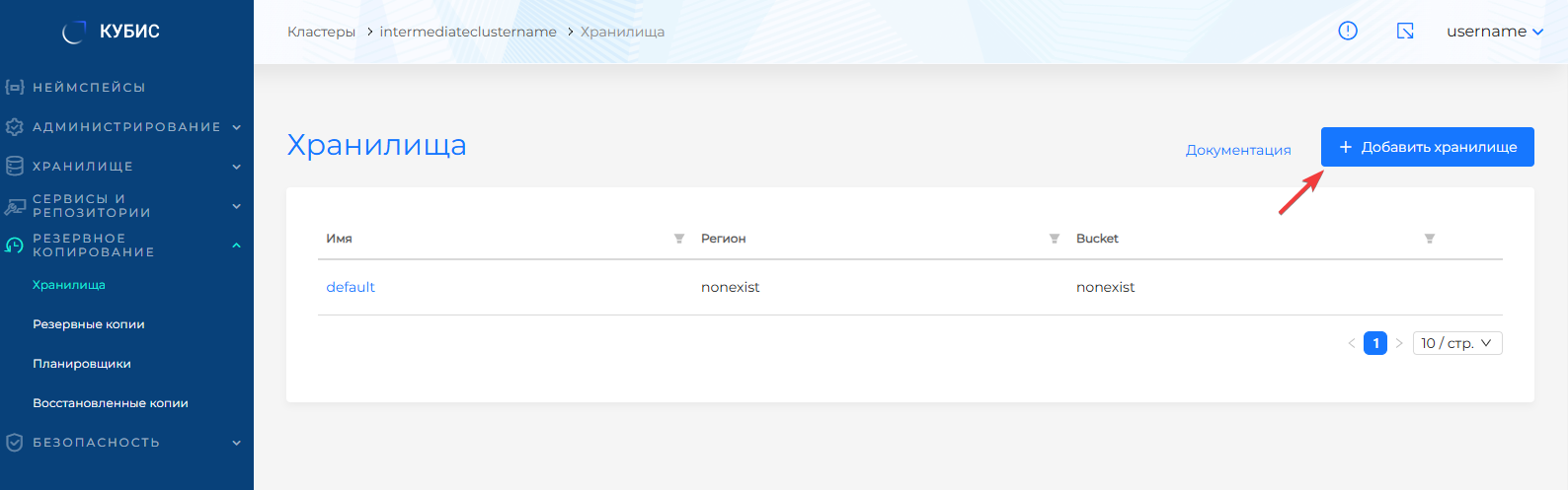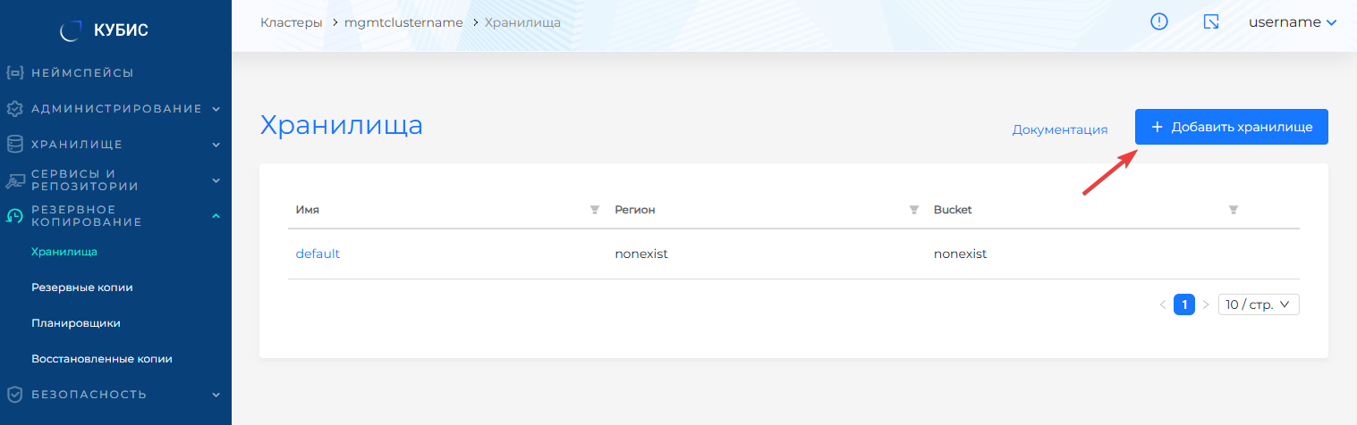 - подключить S3-хранилище, в котором находится резервная копия неймспейсов клиентских кластеров, инфраструктурных провайдеров и ClusterRoles из кластера управления (рисунки 61, 62, 63);