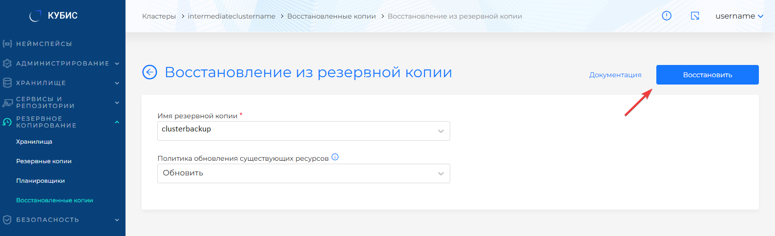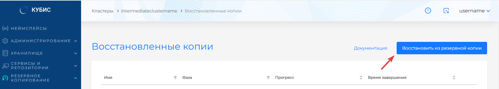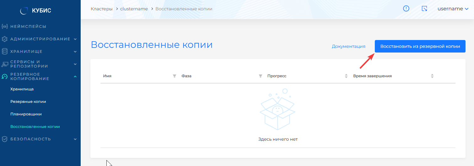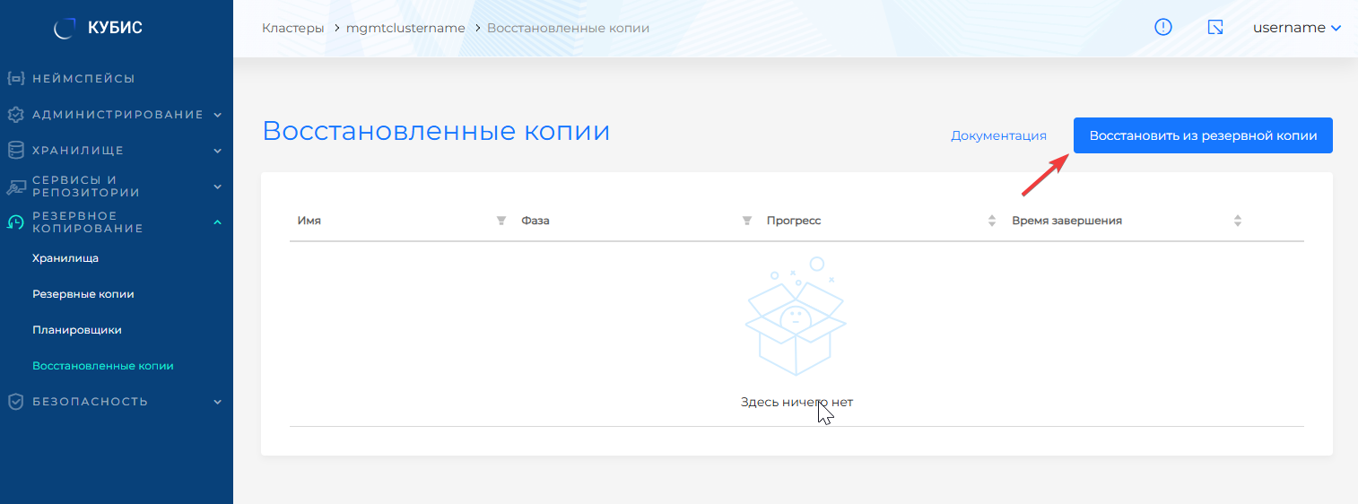 - восстановить резервную копию клиентского кластера (рисунки 57, 58, 59).