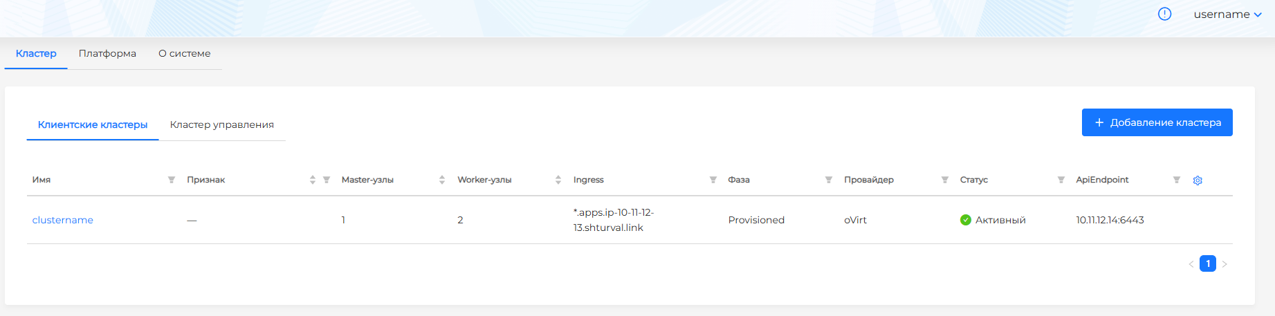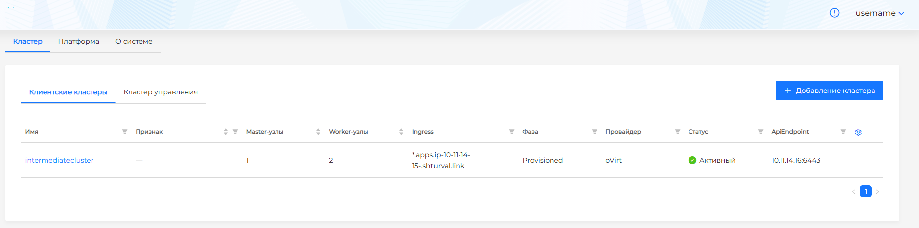 Рисунок 52 ‒ Создание нового клиентского кластера