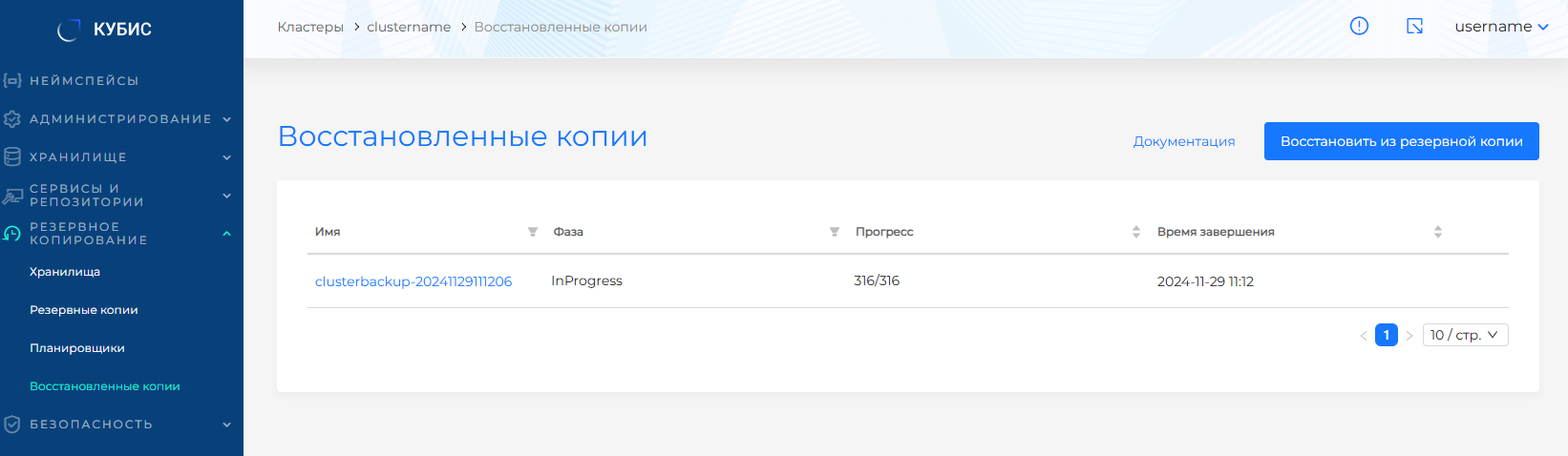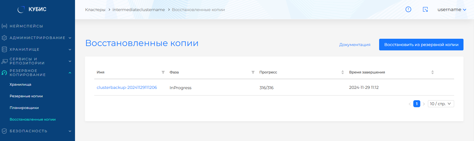 Рисунок 64 ‒ Страница "Восстановленные копии"