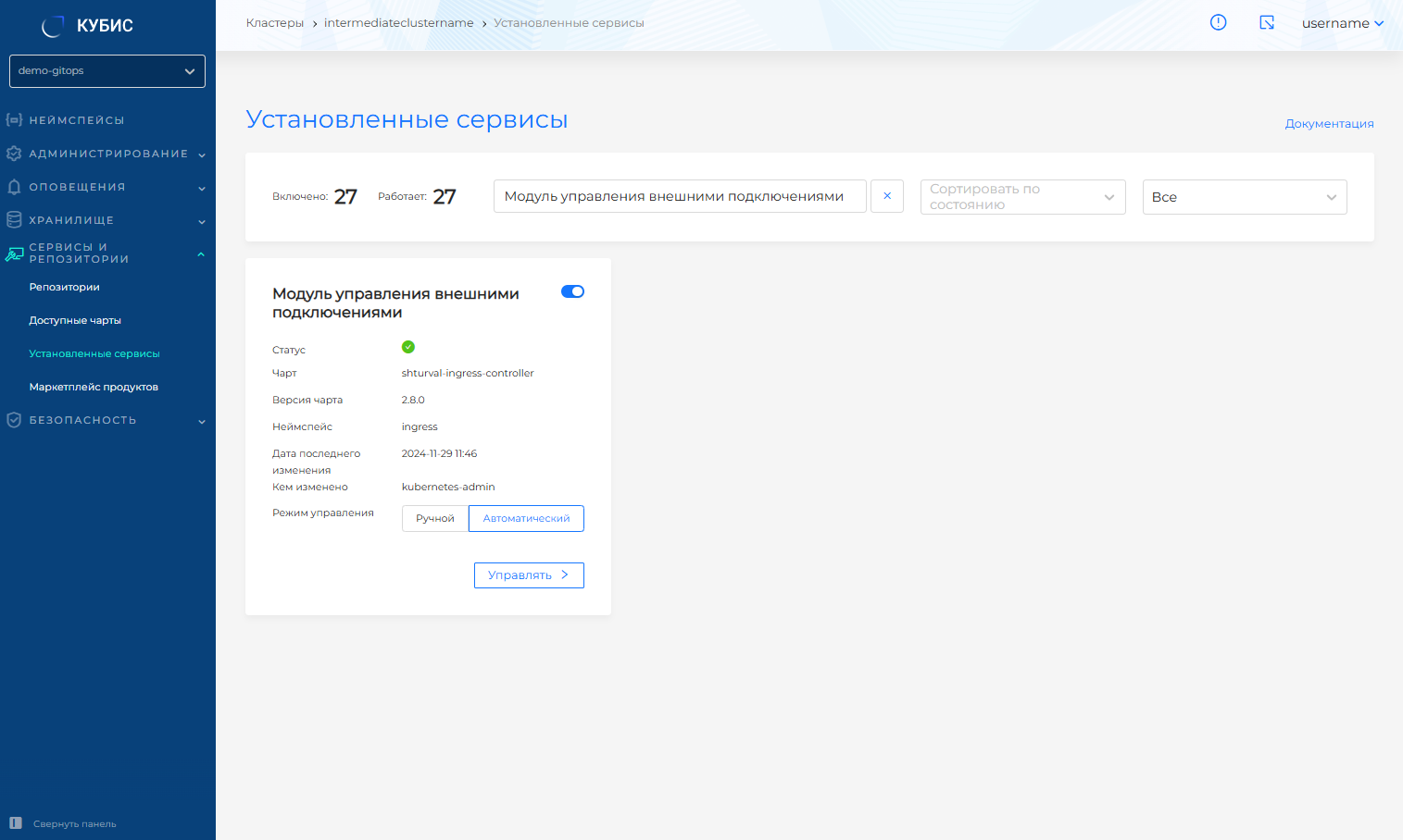- адрес Ingress доступен в SSC "Модуля управления внешними подключениями" ("shturval-ingress-controller") (рисунок 68);