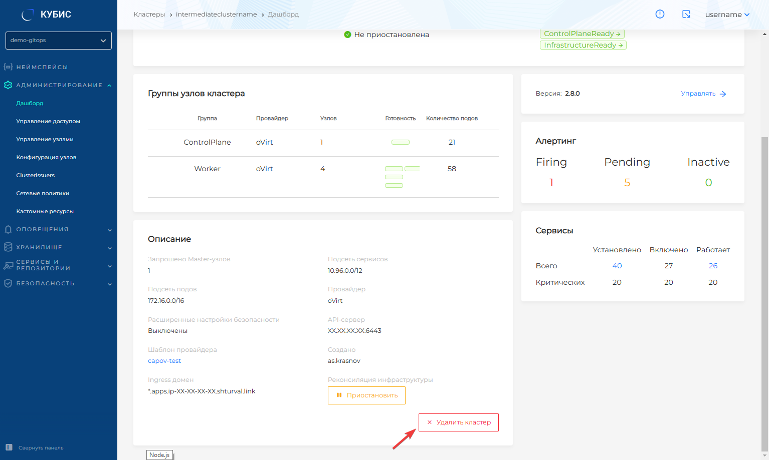 Рисунок 70 ‒ Подтверждение удаления тестового кластера