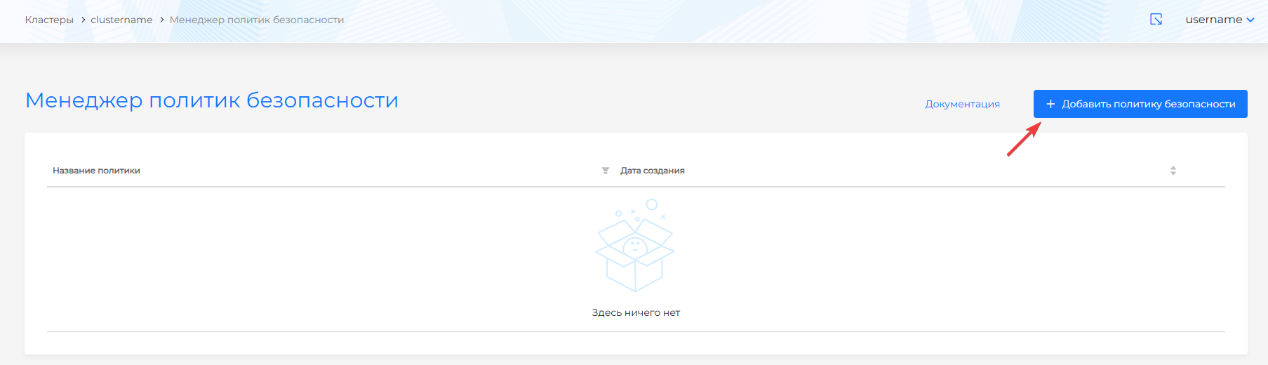 Страница представляет собой (рисунок 377) таблицу со списком политик безопасности, содержащую колонки: