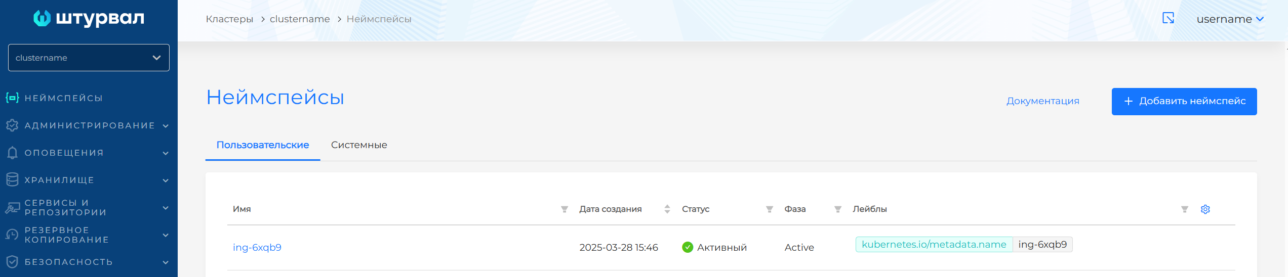 +и задать лейбл неймспейсов, для которых должен быть настроен входящий трафик и создан Ingress Controller. В результате добавления лейбла в разделе "Список неймспейсов" отобразится один или несколько неймспейсов с заданным лейблом.