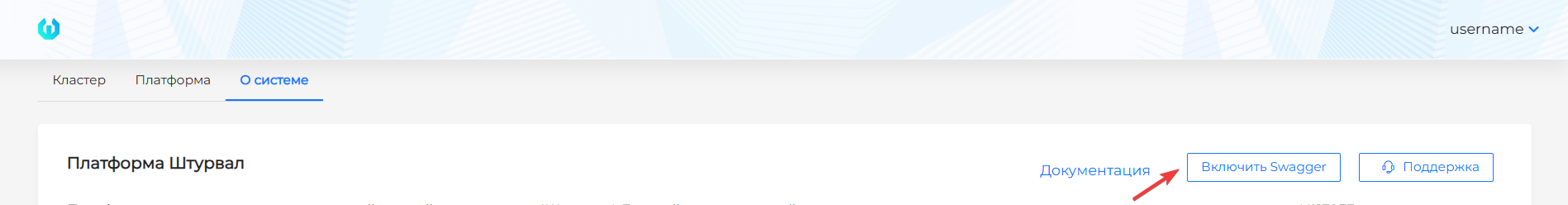 Администратор Комплекса может включить Swagger, нажав на кнопку Включить Swagger (рисунок 5)