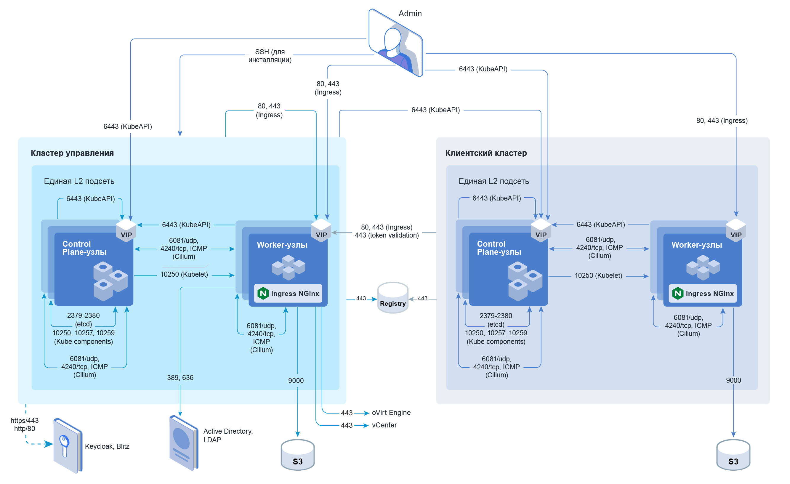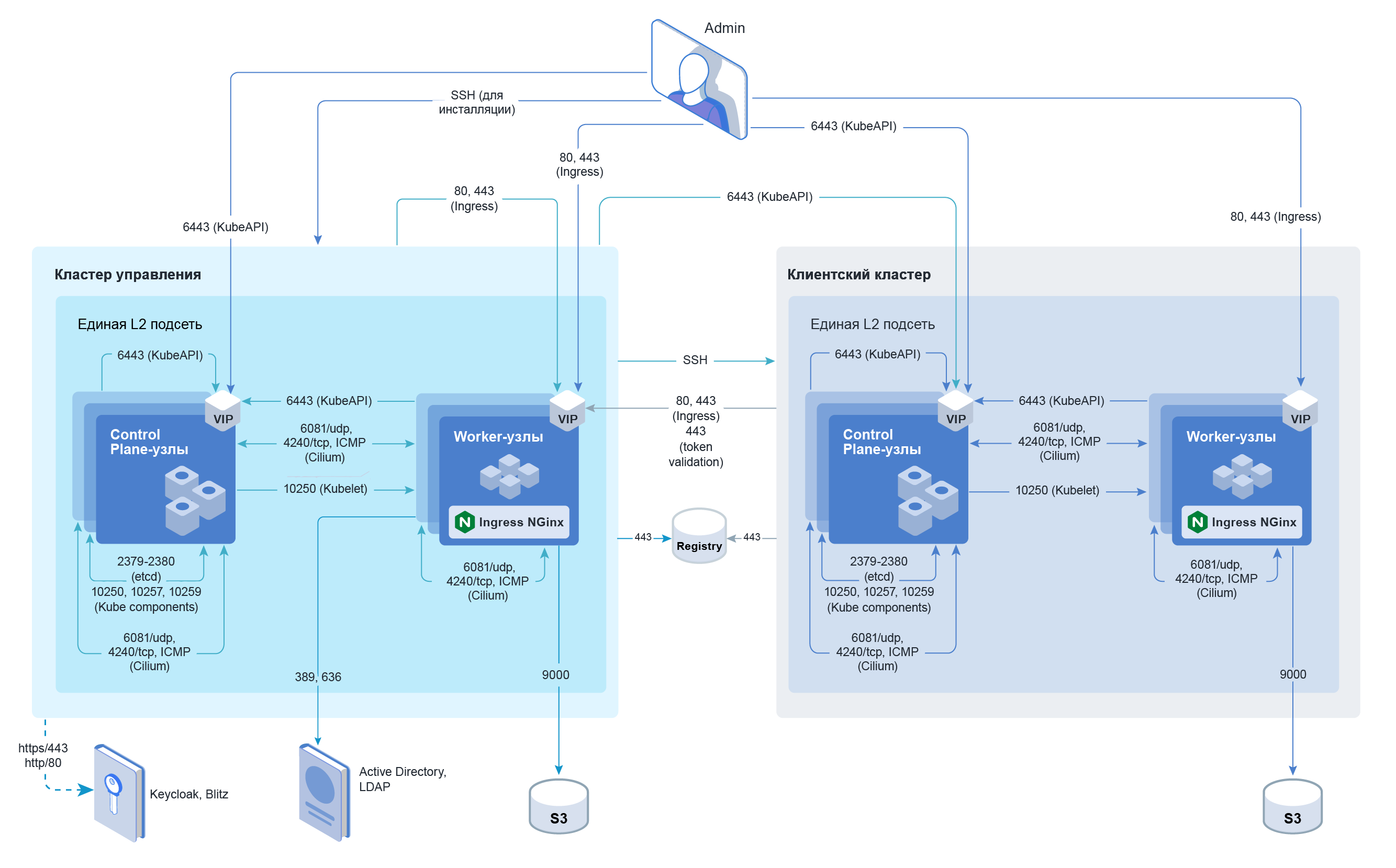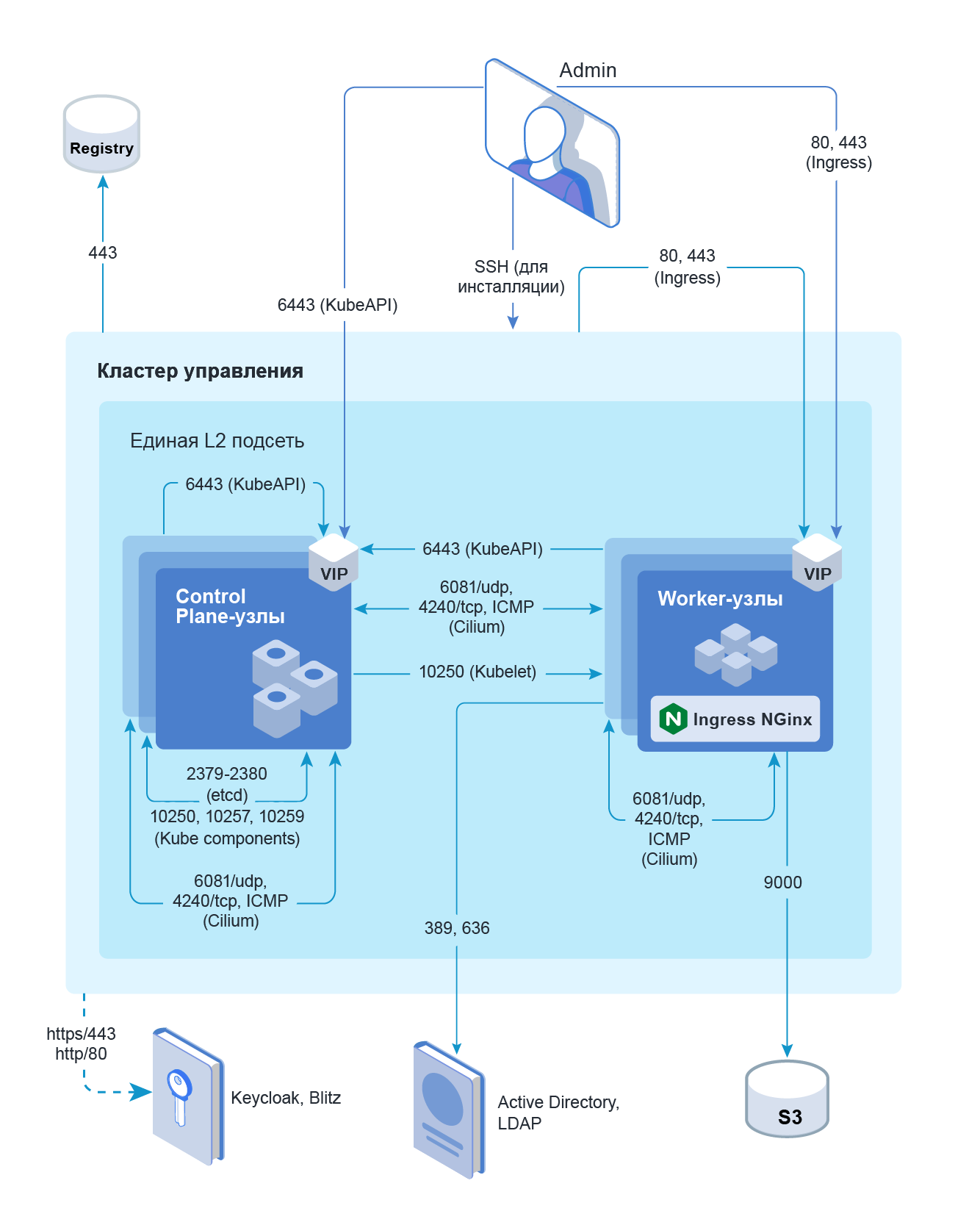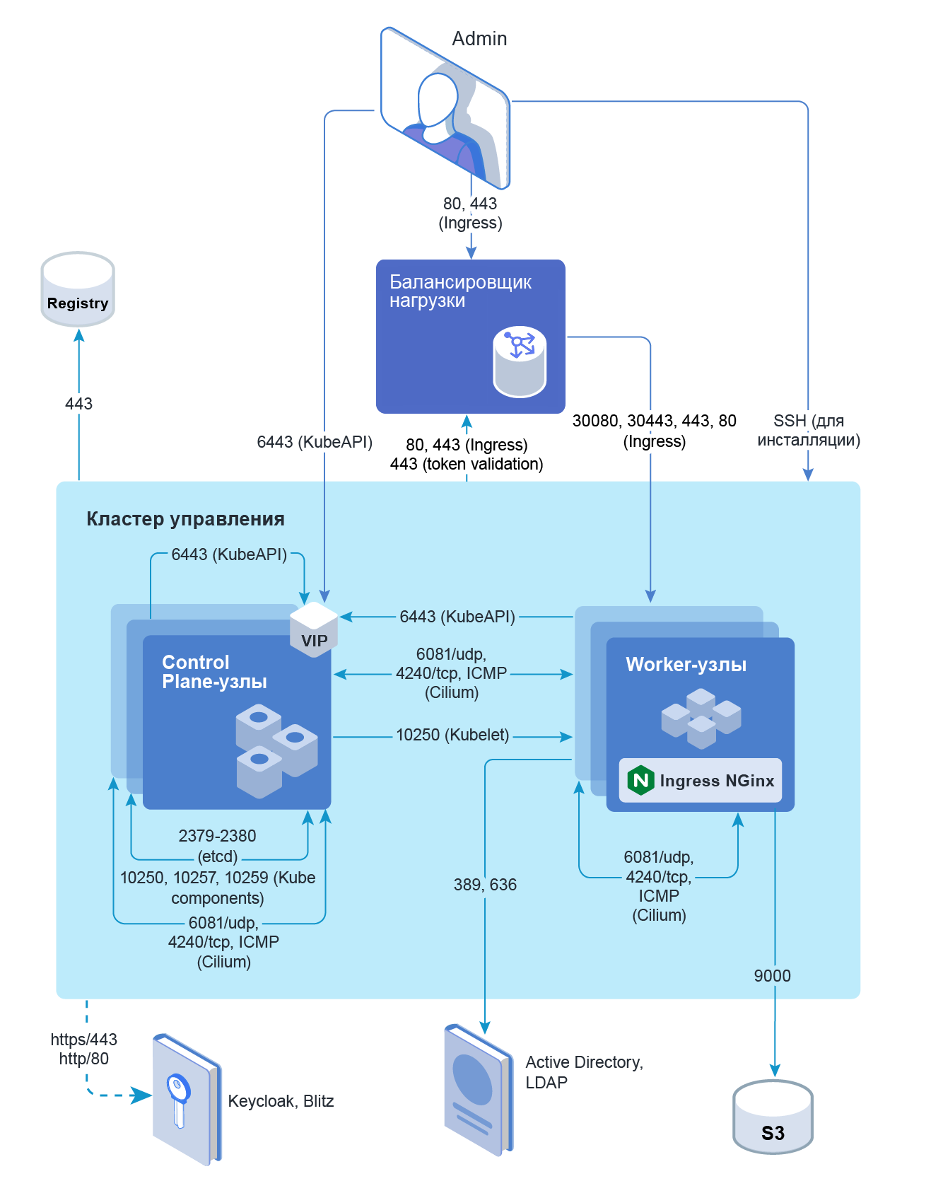 - Второй VIP-адрес (для Ingress) должен использоваться на сетевом балансировщике нагрузки.