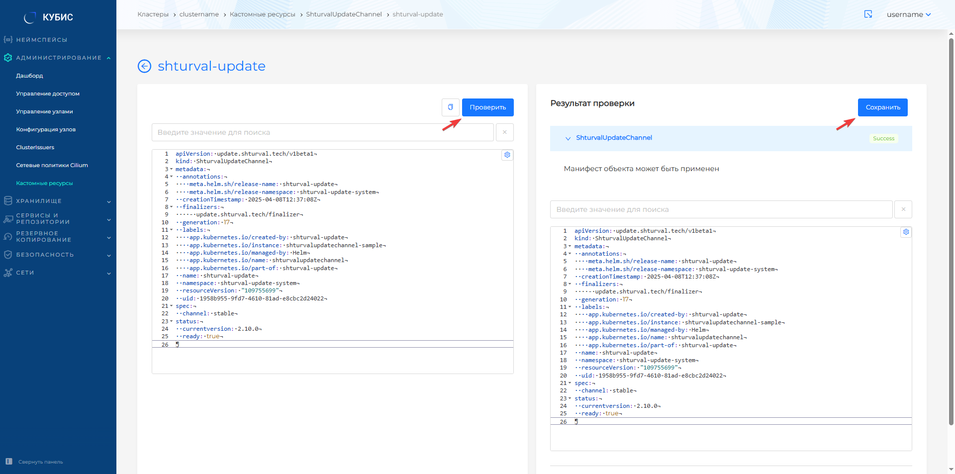 - Удаление доступно только со статическим kubeconfig постоянного кластера управления, выданном для скачивания по завершении установки. В графическом интерфейсе можно найти его в неймспейсе кластера управления, в secret с именем clustername-kubeconfig.