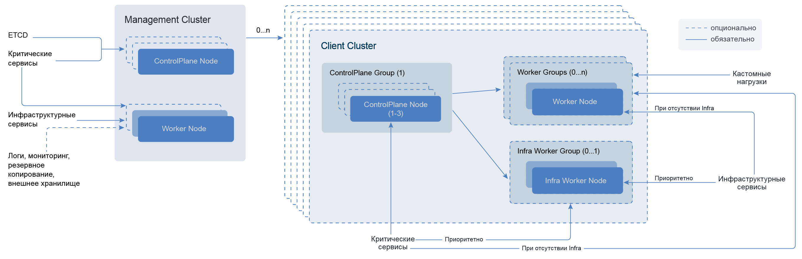 Кластер управления может быть использован для запуска рабочих нагрузок без необходимости создания клиентских кластеров. Подробнее о STAND-ALONE кластере см. на странице отдельно стоящего кластера .