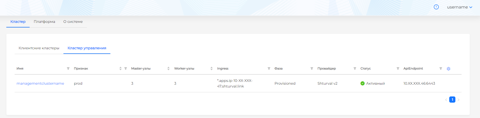 Интерфейс кластера управления будет доступен в разделе "Кластеры → Кластер управления" (рисунок 29).