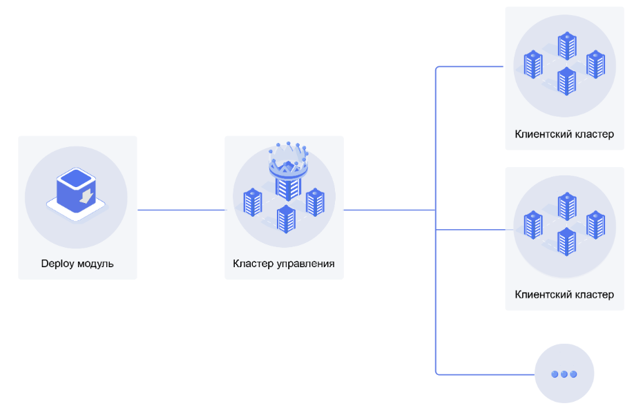 - Кластер управления ‒ представляет из себя кластер оркестрации контейнеров Kubernetes, который позволяет создавать и управлять клиентскими кластерами оркестрации контейнеров. Может быть использован как отдельно стоящий кластер.