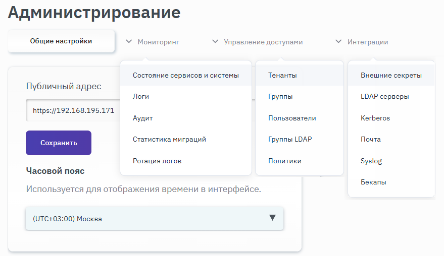 Для изменения публичного адреса необходимо скорректировать адрес в поле "Публичный адрес" и нажать кнопку Сохранить (рисунок 18).