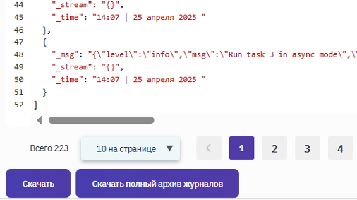 Отображённые логи можно сохранить в файл, нажав кнопку Скачать внизу страницы.