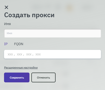 Чтобы создать новый прокси-сервер, необходимо нажать на кнопку + Добавить, и справа появится всплывающее окно с параметрами, которые необходимо заполнить (рисунок 15).
