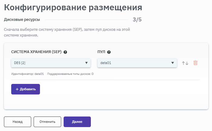 - Выбрать систему хранения данных и пул для размещения (рисунок 128);