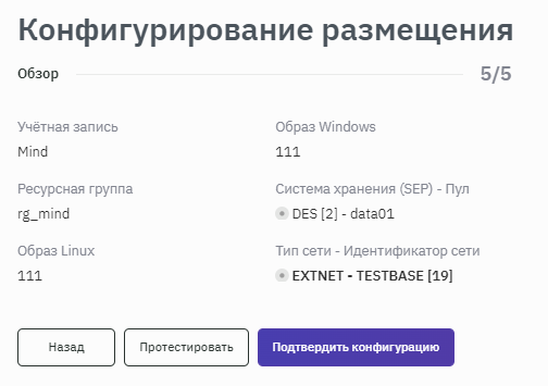 - При необходимости изменения данных воспользоваться кнопкой Назад. Если все данные верны, то подтвердить конфигурацию нажатием кнопки Подтвердить конфигурацию (рисунок 138).
