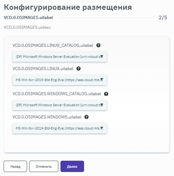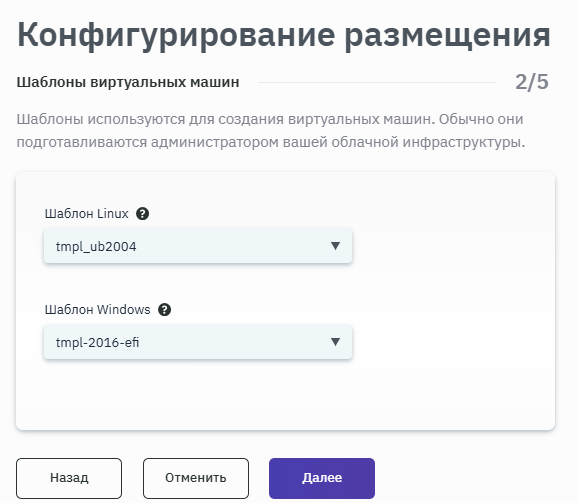 - Выбрать шаблоны ВМ для каждой ОС из выпадающего списка (рисунок 162).