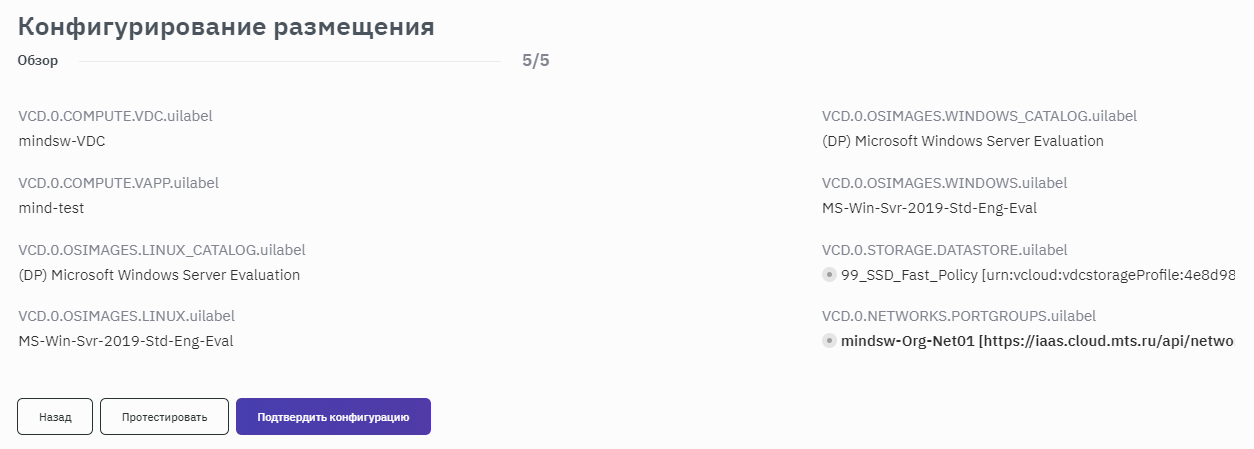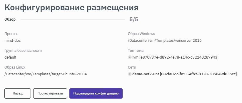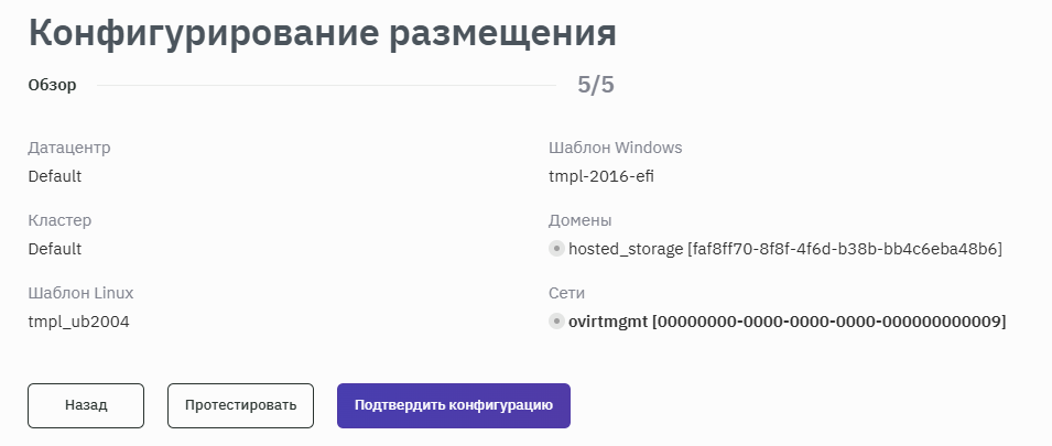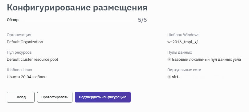 - При необходимости изменения данных воспользоваться кнопкой Назад. Если все данные верны, то подтвердить конфигурацию нажатием кнопки Подтвердить конфигурацию (рисунок 165).