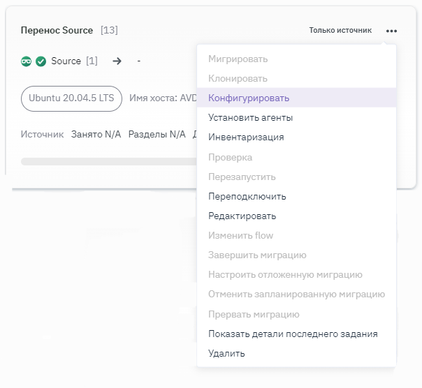 - Перейти в созданное задание и в выпадающем списке (три точки) выбрать "Конфигурировать" (рисунок 169).