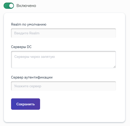"Включено"в активное положение, после чего поля в форме станут доступными для редактирования (рисунок 4); - в поле "Realm по умолчанию" ввести имя домена;