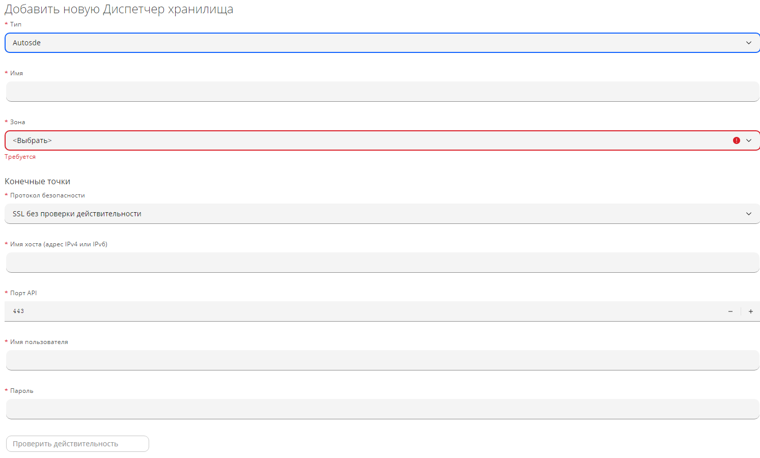Рисунок 56 — Добавление нового диспетчера хранилища Autosde