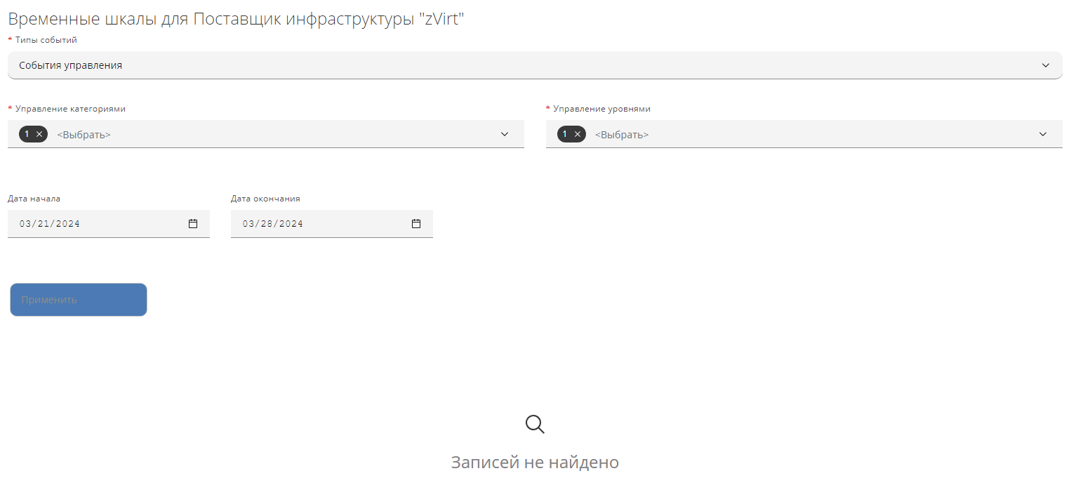 Наблюдение и выбрать в появившемся меню Временные шкалы для просмотра событий в периоды времени в появившейся рабочей области (рисунок 47): - выбрать из раскрывающегося списка "Типы событий" опцию "События управления" или "События политик";