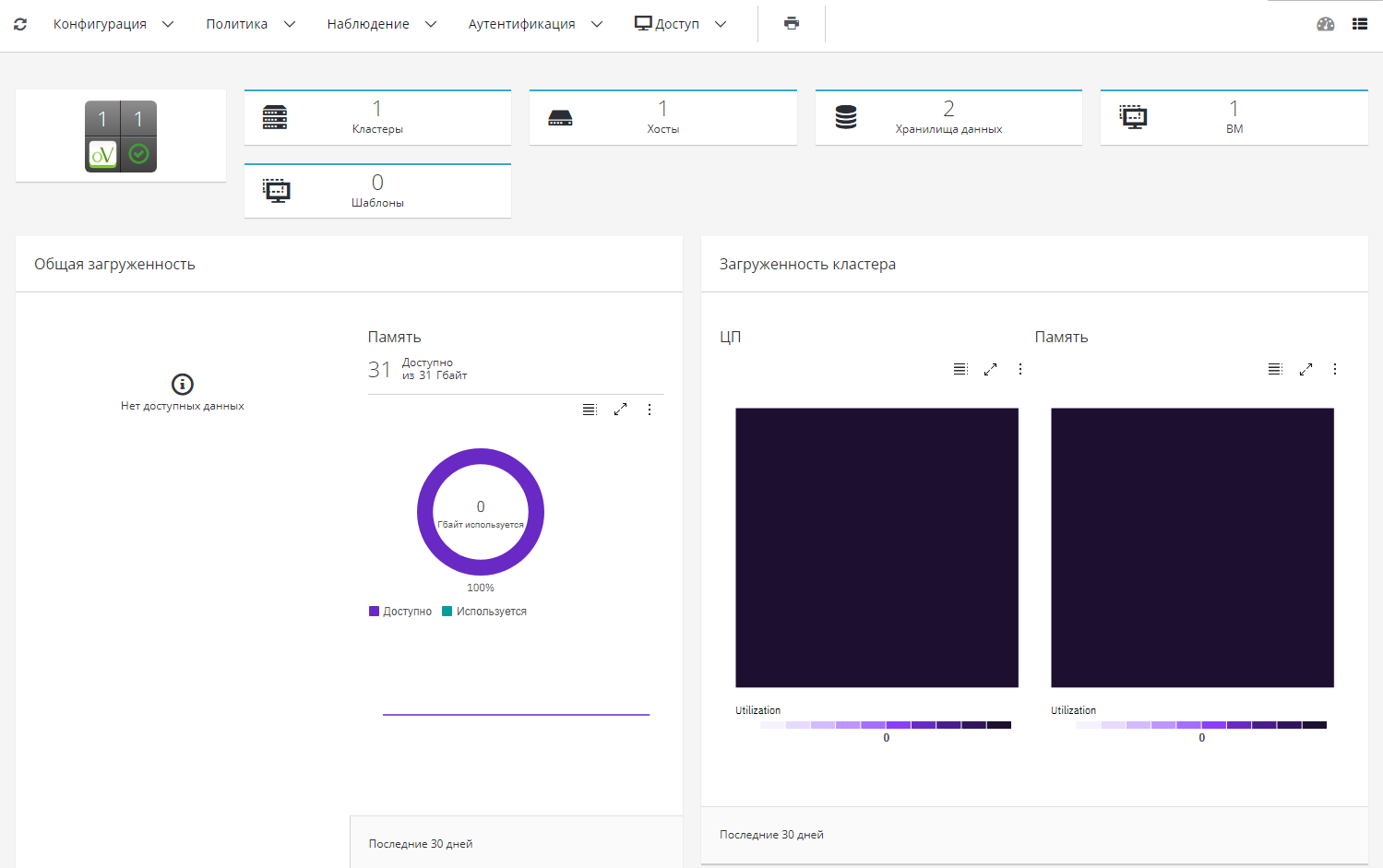 - "Загруженность кластера";