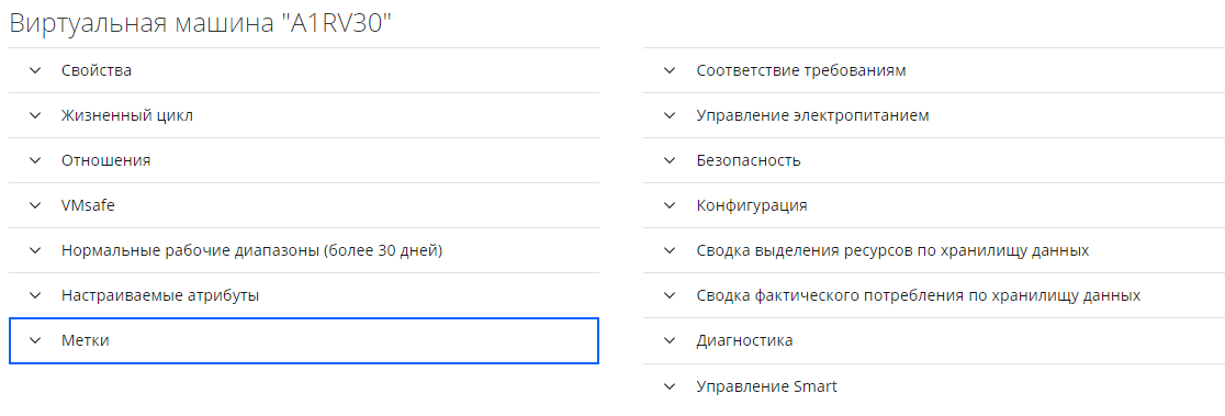 - Метки – метки, привязанные к ВМ;