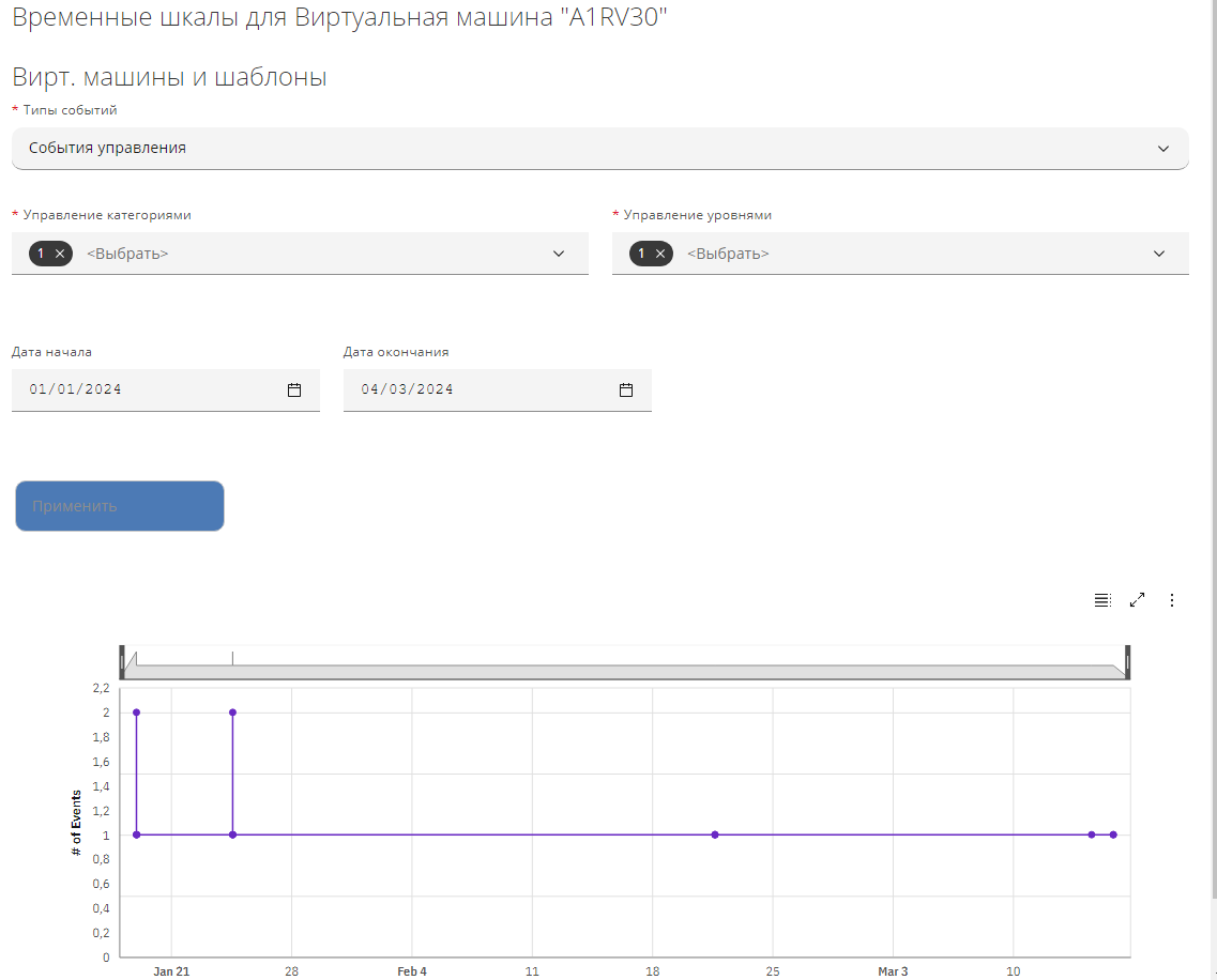 - Временные шкалы – просмотр временных шкал для заданных типов, категорий и уровней событий, дат начала и окончания.