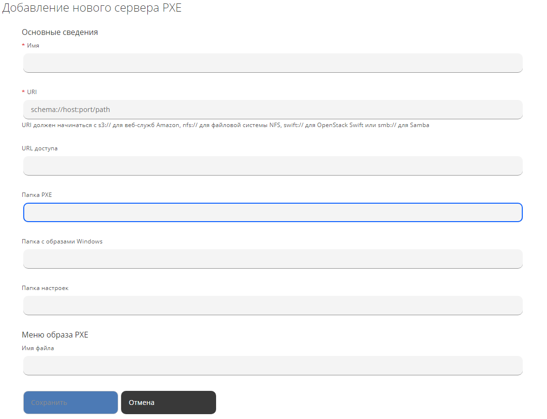 Для добавления нового сервера PXE необходимо выполнить следующие действия: