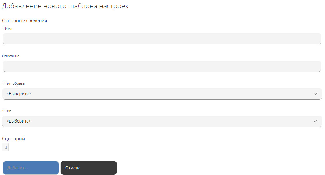 Для добавления шаблона настроек необходимо выполнить следующие действия:
