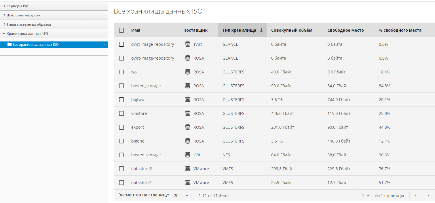 Комплекс также позволяет предоставлять ISO-образы из хранилищ данных поставщиков инфраструктуры.