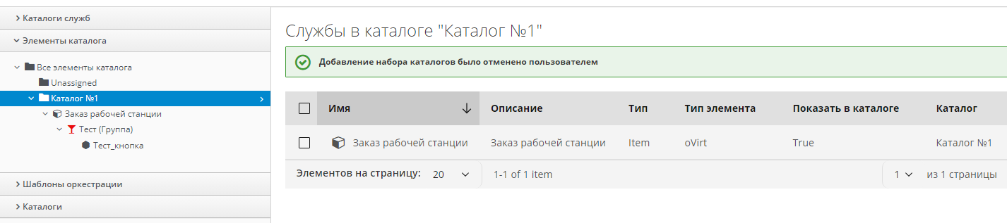 - в меню панели навигации выбрать пункт "Службы → Каталоги";