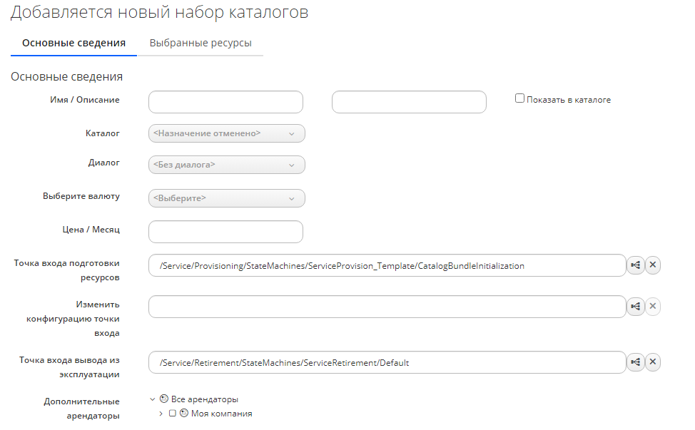 Для добавления нового набора каталогов, включающего несколько ресурсов, нужно выполнить следующие действия: