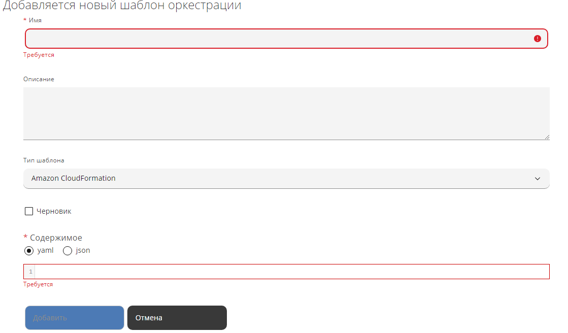 Для добавления нового шаблона оркестрации нужно выполнить следующие действия: