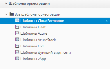 Комплекс поддерживает ряд встроенных типов шаблонов оркестрации, которые упрощают развертывание сложных служб. Шаблоны оркестрации добавляют как элементы каталога в каталог служб. Также можно создавать стек оркестрации из развернутых экземпляров ВМ и связанных с ними наборов ресурсов с использованием шаблона и запускать его из каталога с помощью диалогового окна службы.
