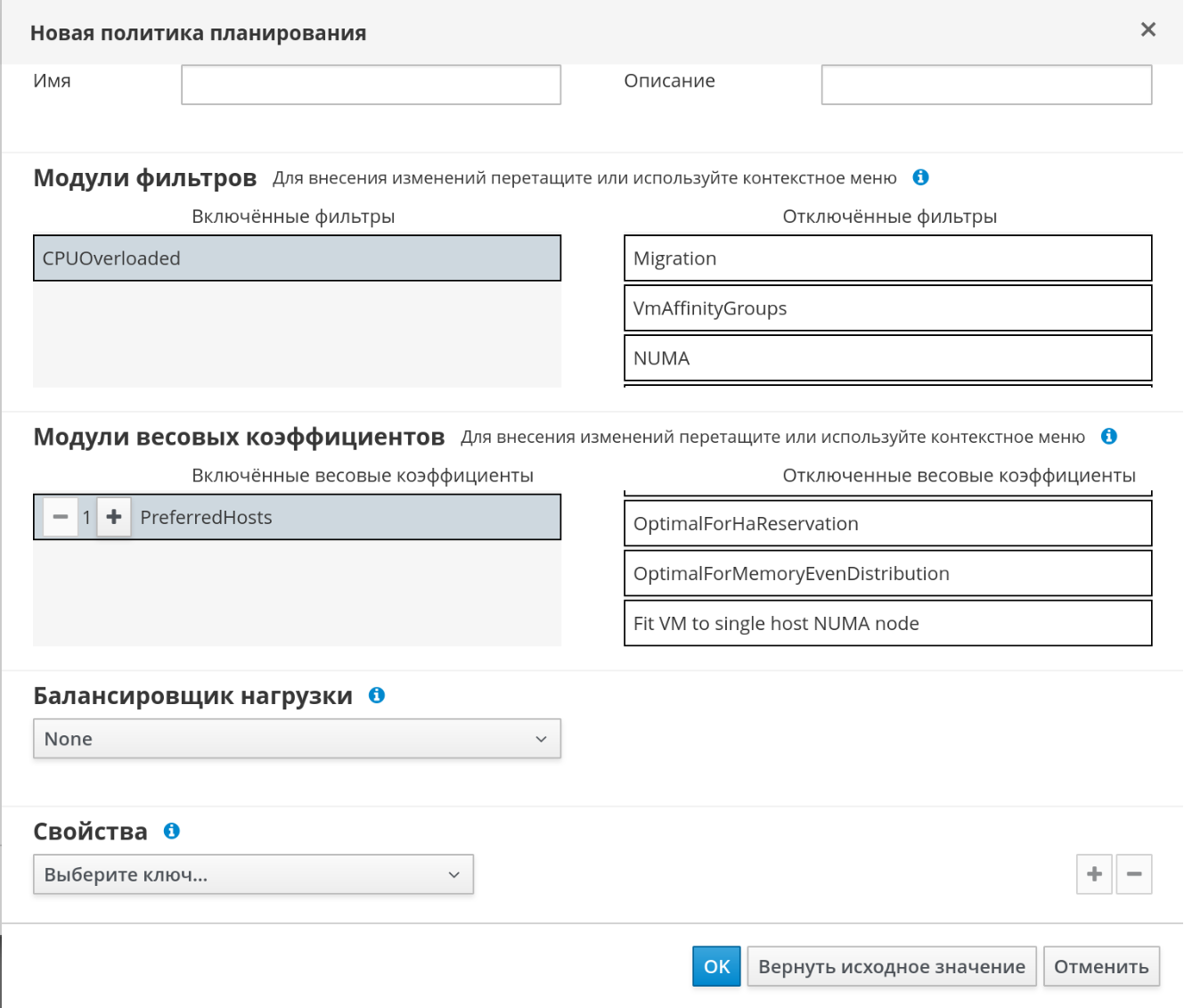 - настроить параметры типа экземпляра так, как это необходимо. Параметры, присутствующие в окне "Новый тип экземпляра", идентичны параметрам в окне "Новая виртуальная машина", но присутствуют только поля, имеющие отношение к типам экземпляров (см. Применение VDSM);