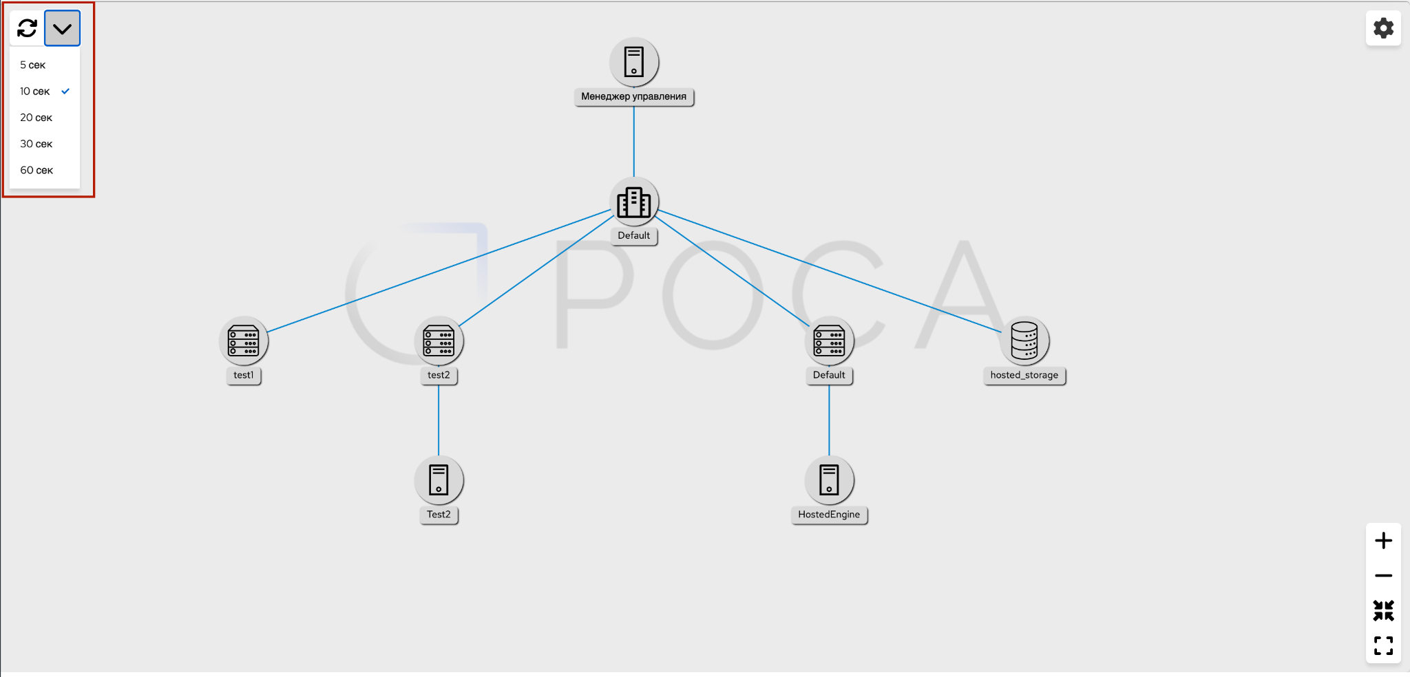 - Выпадающее меню ‒ предоставляет выбор интервала автоматического обновления данных. Пользователь может выбрать предпочтительную частоту обновления (например, каждые 5 секунд, 30 секунд и т. д.).