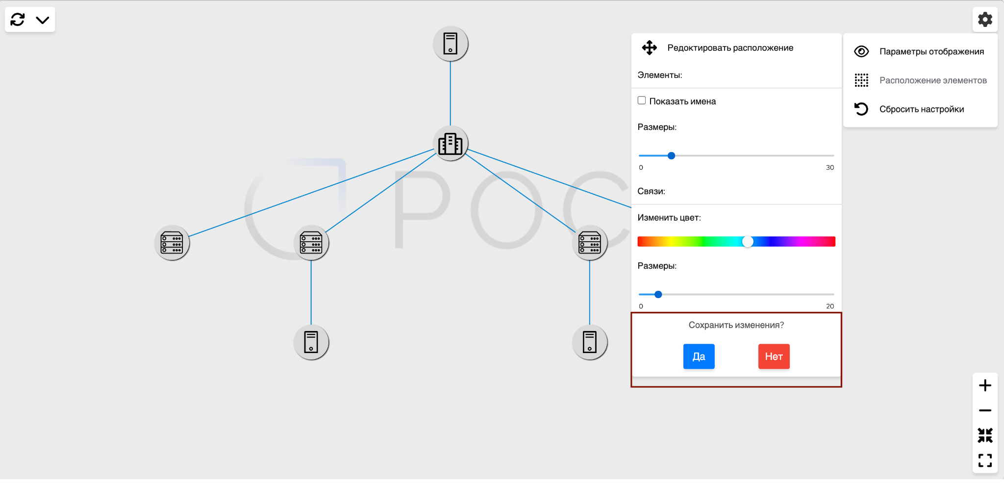 - Кастомизация отображения ‒ настройка параметров элементов, таких как отображение имен, изменение размеров объектов и связей между ними, а также настройка их цвета (рисунок 37).