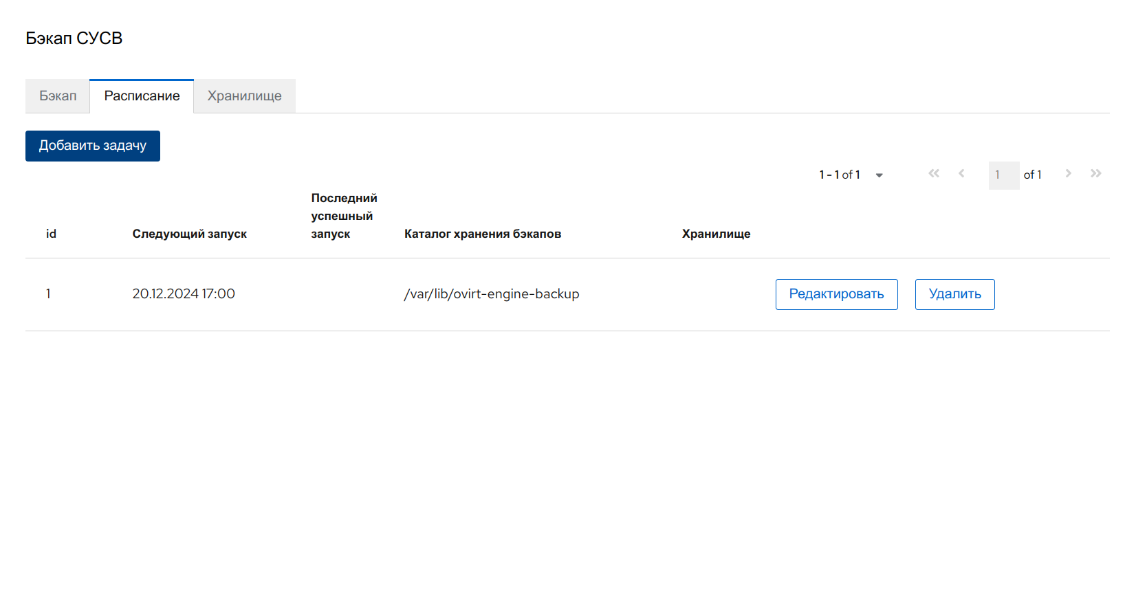 - создать домен хранения резервных копий (см. п. Настройка домена хранения данных в качестве домена хранения резервных копий);