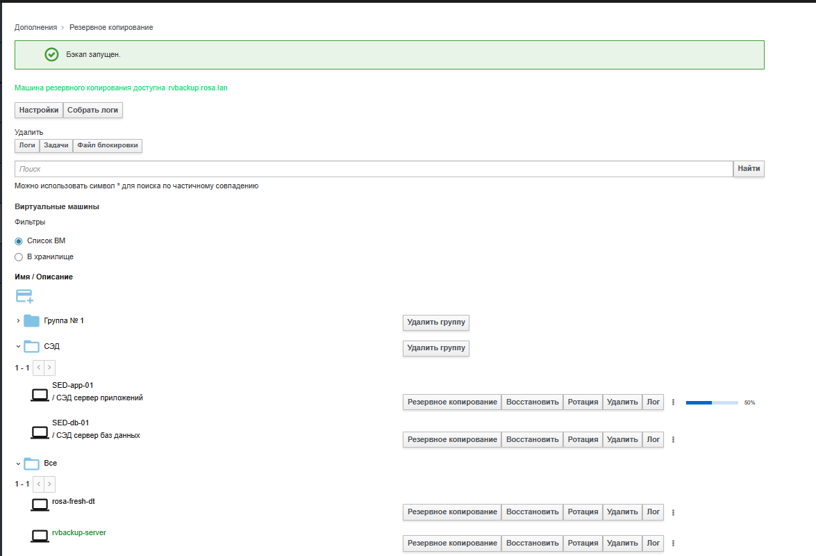 Рисунок 15 ‒ Процесс резервного копирования