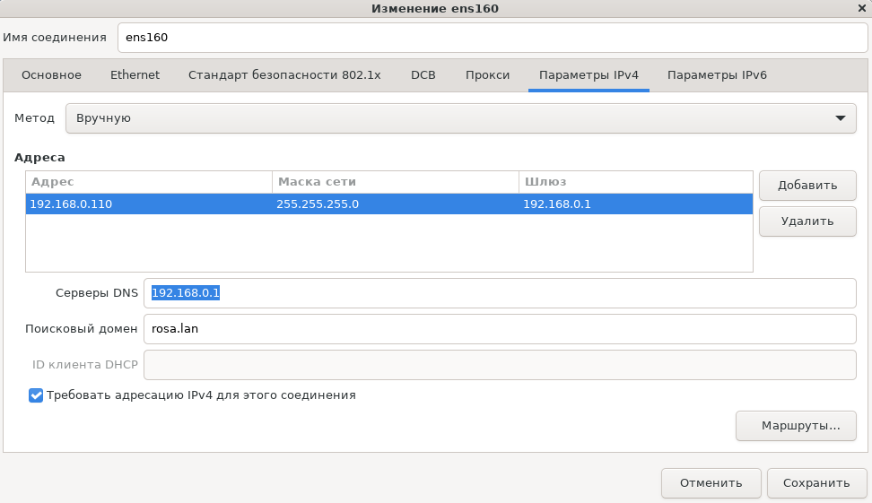 Рисунок 13 ‒ Настройка параметров IPv4 вручную